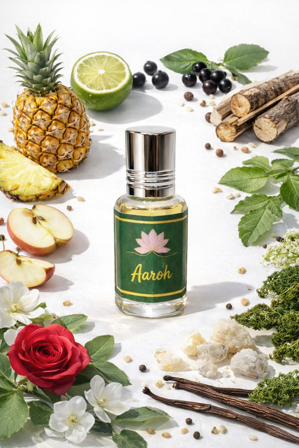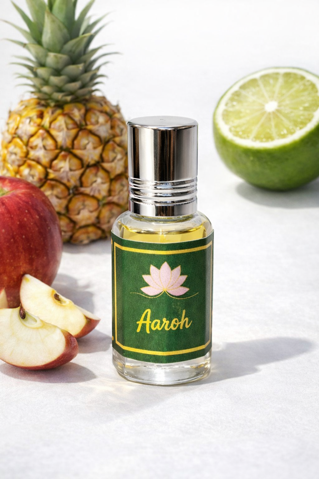 Aaroh Attar is a bold, modern, alcohol-free fragrance inspired by a fresh fruity and woody aroma profile. It opens with bright citrus and pineapple-like freshness, balanced by smoky woods and a smooth, musky base, creating a confident and long-lasting scent.
