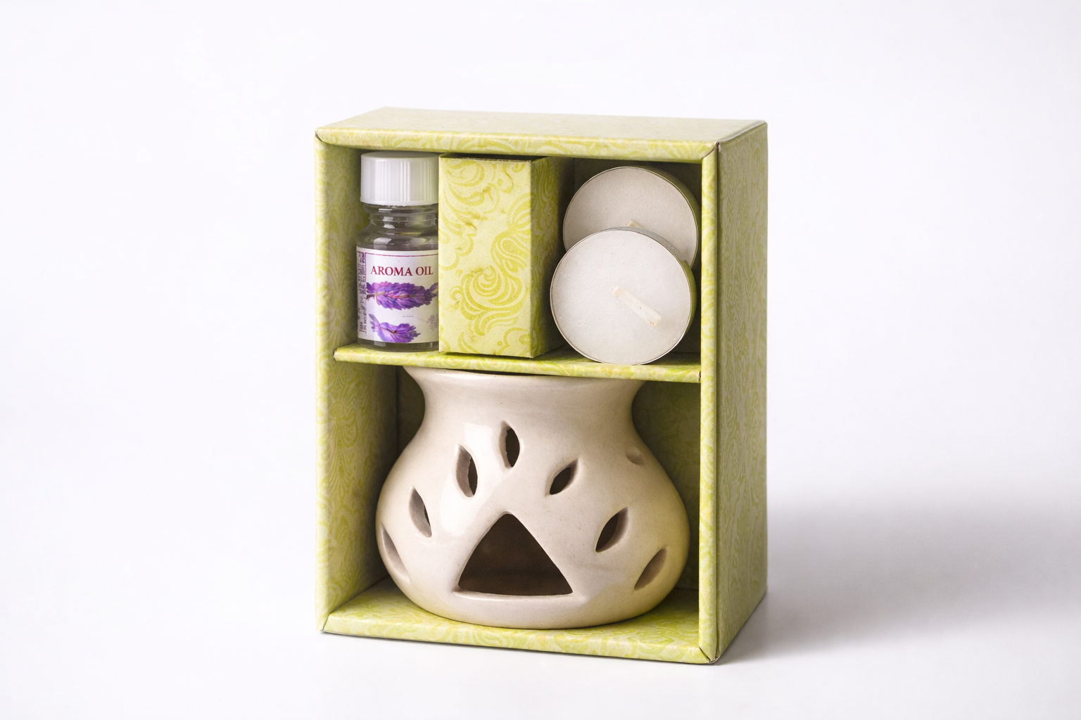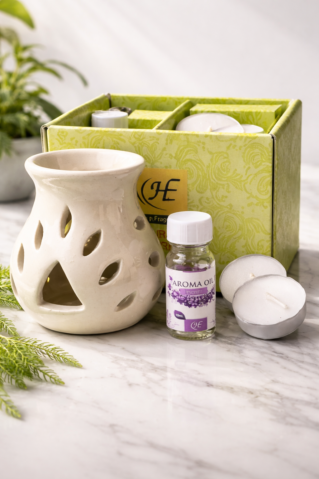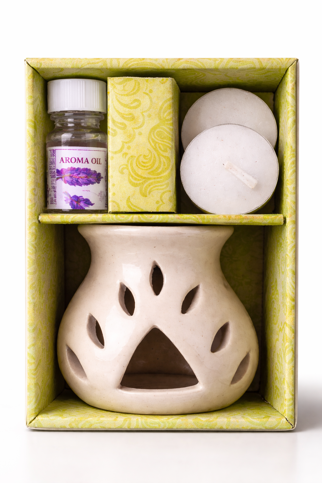 - COMPLETE AROMATHERAPY SET: This ceramic aroma diffuser comes with lavender or lemongrass essential oil and tealight candles, providing everything needed for a relaxing aromatherapy experience at home or office