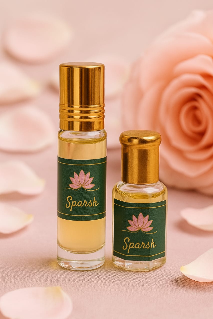 Sparsh is a gentle rose ittar made from steam-distilled desi gulab petals. Its fragrance is soft, soothing, and true to the scent of freshly bloomed roses. Free from alcohol and artificial additives, it’s ideal for daily wear, prayer, or mindful moments.